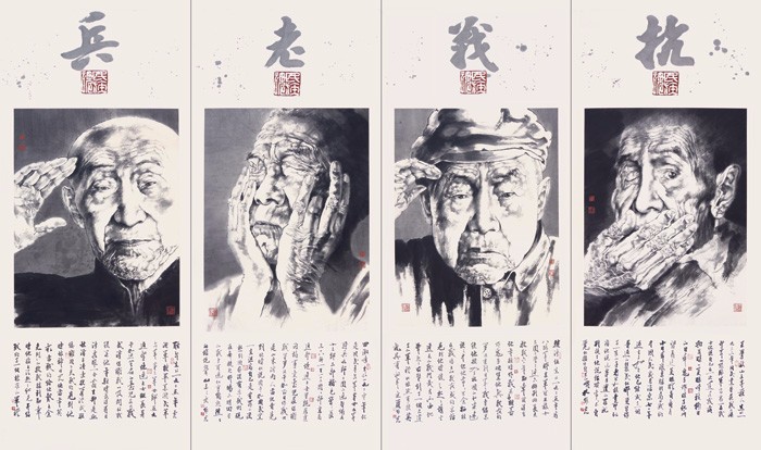 孔維克 國畫 《歲月滄桑——抗戰老兵》(2016)