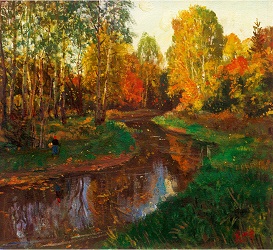 潘義奎 油畫(huà) 《森林中的小河》 55cmX60cm 2013年