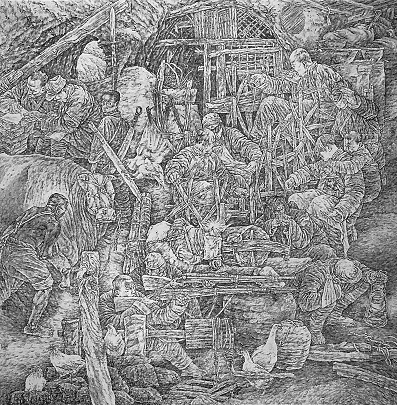 于長(zhǎng)江 陳嶸 錢(qián)宗飛 吳濤毅 《民兵史畫(huà)長(zhǎng)卷》 國(guó)畫(huà) 246cm×243cm 1999年
