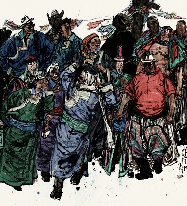 錢(qián)宗飛 《盛會(huì)》(局部) 國(guó)畫(huà) 360cm×178cm 2011年