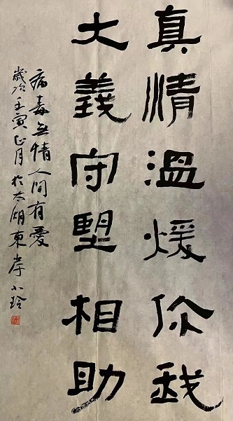 朱小玲 書法《真情溫暖你我,大義守望相助》