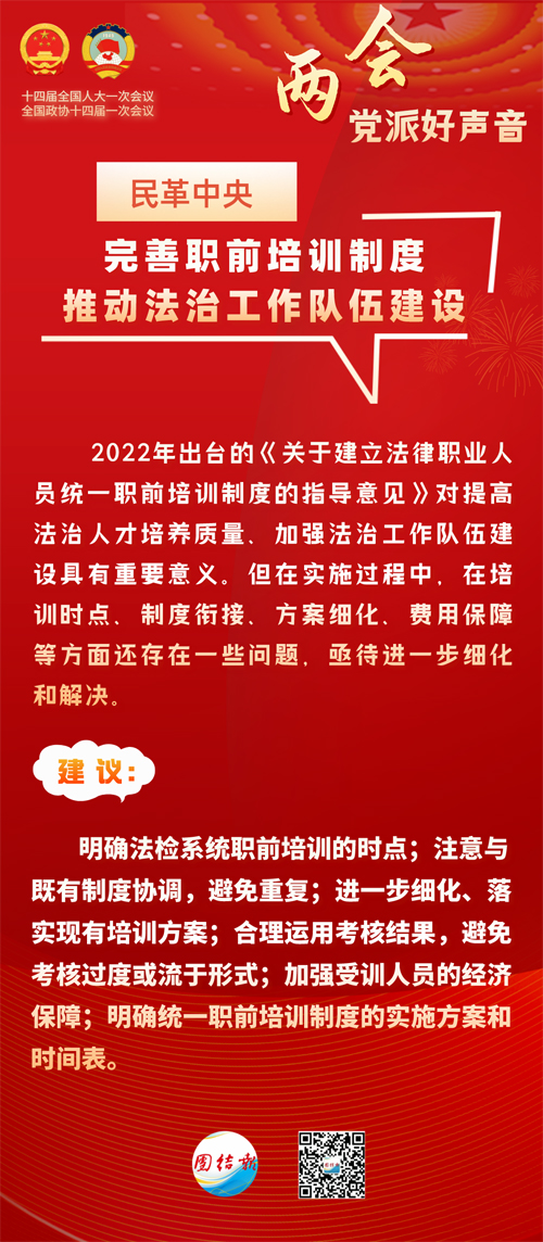 2022年,中共中央組織部、最高人民法院、最高人民檢察院、司法部聯(lián)合印發(fā)《關(guān)于建立法律職業(yè)人員統(tǒng)一職前培訓制度的指導意見》(簡稱《意見》)?!兑庖姟穼嵤┬Ч绾危窟€應(yīng)注意哪些問題?對此,今年全國兩會上,民革中央專門提交了《關(guān)于完善職前培訓制度,推動法治工作隊伍建設(shè)的提案》,并結(jié)合存在的問題提出六條對策建議。