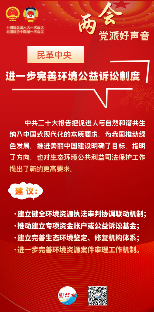 中共二十大報告把促進人與自然和諧共生納入中國式現代化的本質要求,為我國推動綠色發展、推進美麗中國建設明確了目標、指明了方向,也對生態環境公共利益司法保護工作提出了新的更高要求。今年全國兩會上,作為重點關注社會和法制領域的參政黨,民革中央提交了《關于完善環境公益訴訟制度的提案》,提出四方面對策建議,引發多方關注。