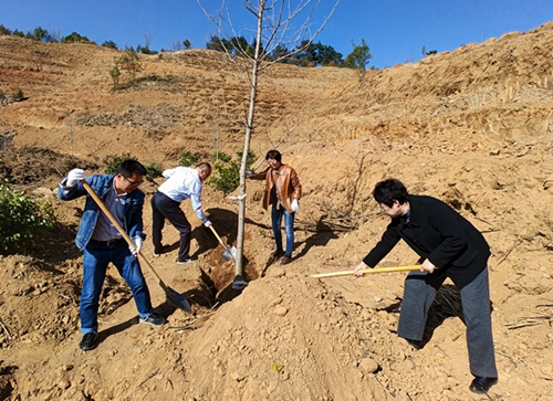 明媚的春光中,機關干部們擼起袖子揮鍬鏟土、扶正樹苗、培土灑水……大家揮灑汗水,種下了一棵棵銀杏、油茶,為光禿禿的山坡增添了一抹抹新綠,以實際行動踐行“綠水青山就是金山銀山”的理念,也為美化村居環境貢獻了一份力量。