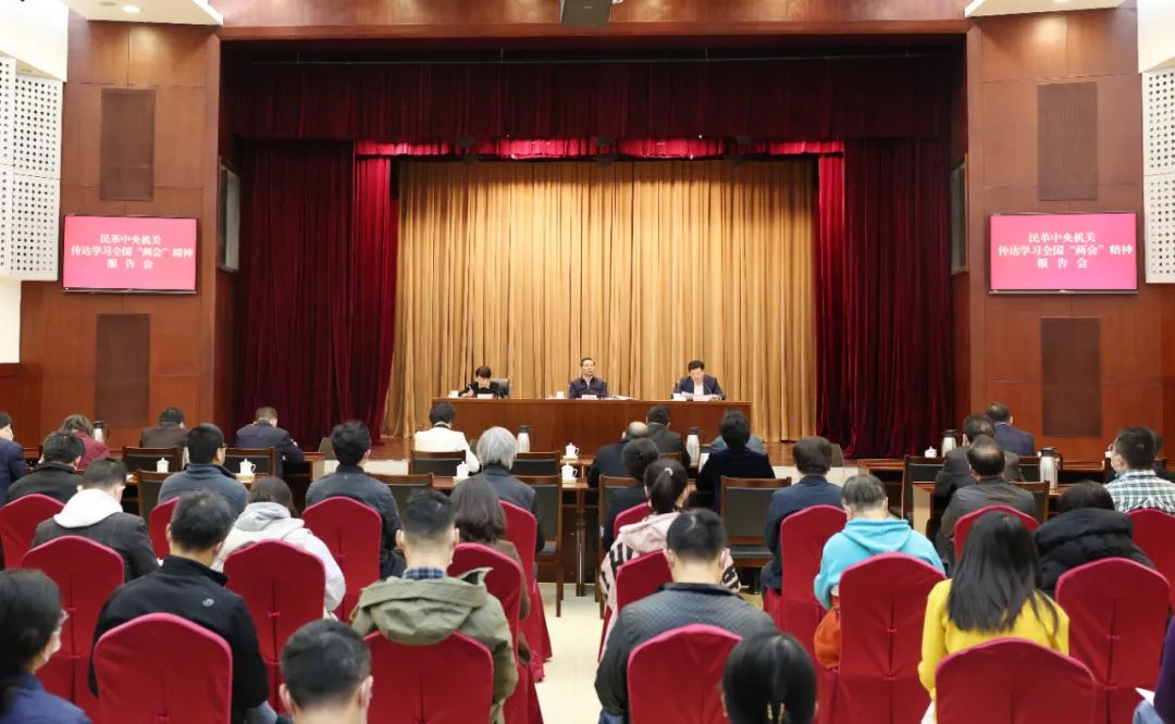 民革中央機關(guān)傳達學(xué)習(xí)全國兩會精神報告會現(xiàn)場。