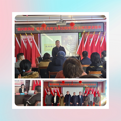 2月24日,民革沈陽市委會專職副主委楊耀志帶隊到大東區津橋街道榮樂社區開展“送法進社區”活動,積極助力提升基層社會治理,為群眾提供法律志愿服務。民革大東區工委副主委奎媛律師開展普法講座,以解決社區居民實際問題和困難為導向,為現場群眾提供公益性法律咨詢服務。市委會副主委遲廣俊及機關有關同志、大東區工委部分黨員參加活動。