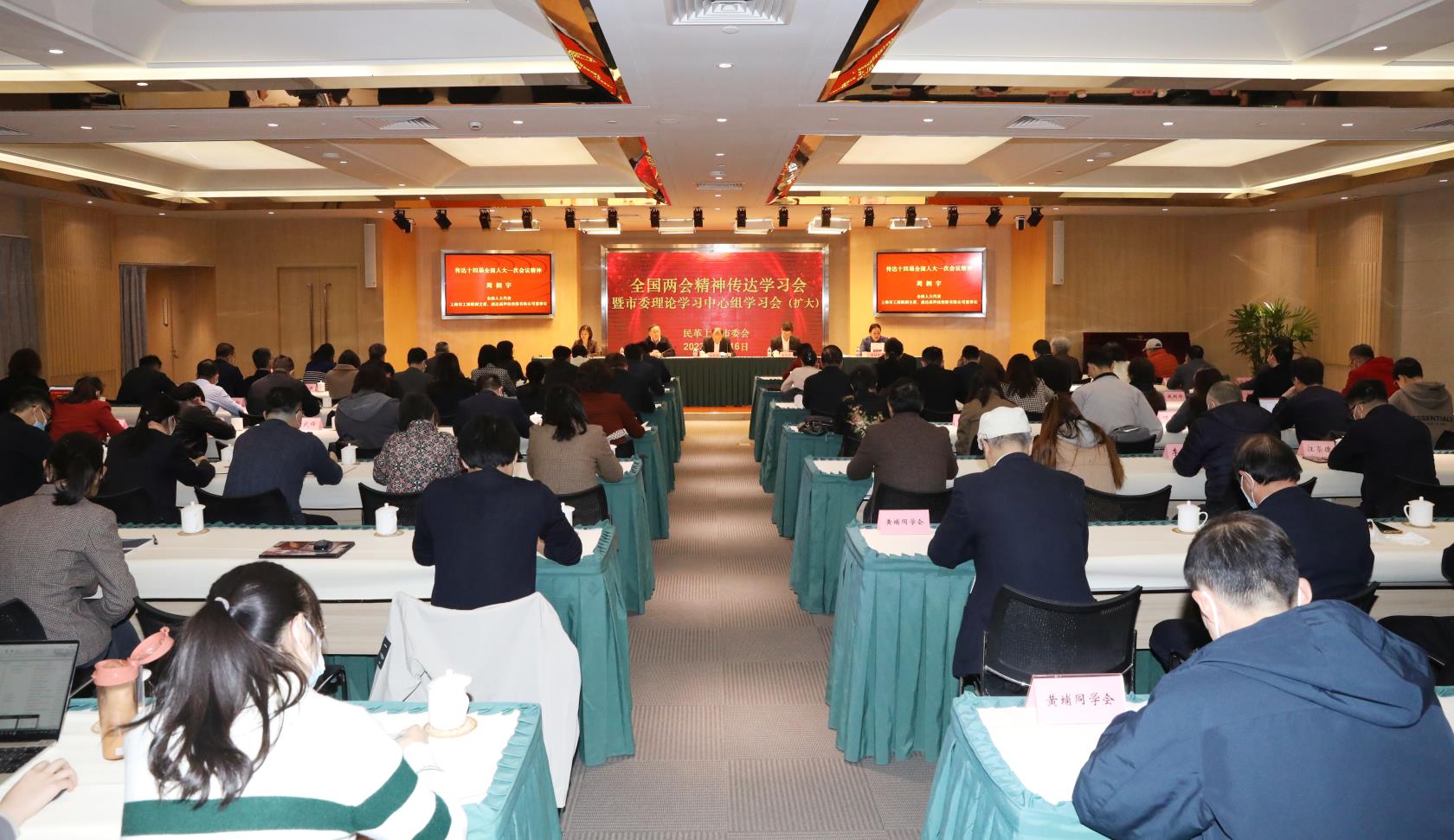 3月16日下午,民革上海市委會舉行全國兩會精神傳達學習會暨市委理論學習中心組學習會(擴大)。全國政協委員、上海市人大常委會副主任、民革上海市委會主委徐毅松出席并講話。全國政協委員、市委會副主委王光賢、李國華,全國人大代表周桐宇到會傳達。會議由民革上海市委會秘書長翟駿主持。