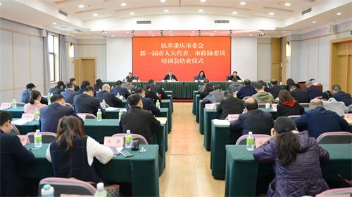 3月29至31日,民革重慶市委會舉辦新一屆市人大代表、市政協委員學習培訓會。重慶市政協副主席、民革重慶市委會主委王新強,市委會副主委龔小雪、喬宏,秘書長劉金萍等出席培訓會。民革黨員中的新一屆市人大代表、市政協委員參加培訓。