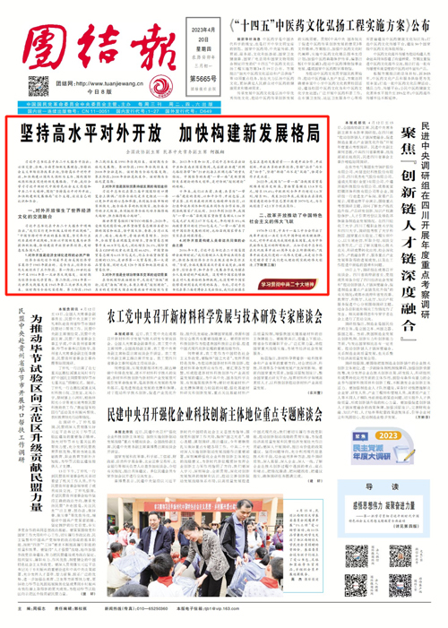 習近平總書記強調,各級領導干部要提高構建新發展格局、推動高質量發展、駕馭現代化進程的能力和水平。民革作為中國特色社會主義參政黨,必須始終不渝堅持中國共產黨的全面領導,堅定不移投身中國式現代化的偉大進程,按照“四新”“三好”的總要求,充分調動全體黨員的積極性,不斷增強調查研究的深入性,努力提升參政議政的系統性,持續關注建言獻策的實效性,為堅持高水平對外開放,加快構建新發展格局,為全面建設社會主義現代化國家、全面推進中華民族偉大復興貢獻民革力量!