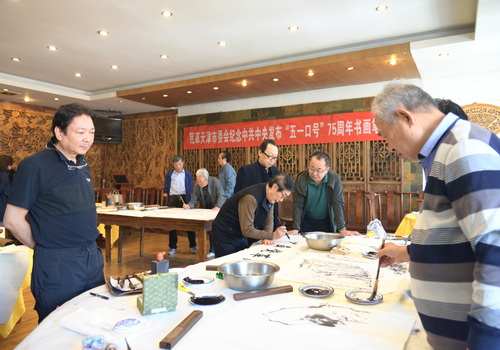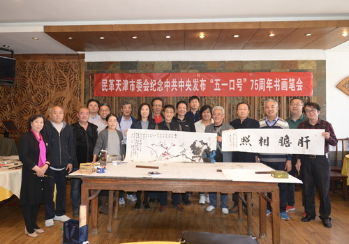 4月18日,民革天津市委會舉辦紀念中共中央發布“五一口號”75周年書畫筆會。民革天津市委會專職副主委王紅梅出席活動,民革天津畫院名譽院長黑成義、院長韓必省,副院長高學年、方大開、王延強、齊君,顧問、理事參加筆會。畫院秘書長惠藍圖主持筆會。