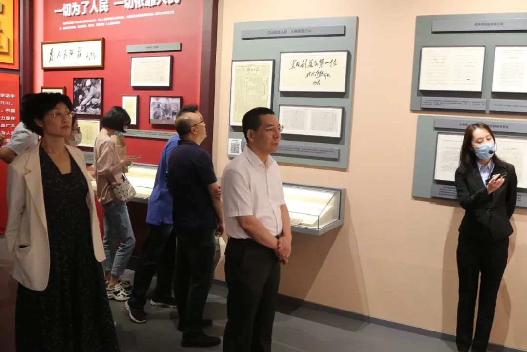 在《百年恰是風(fēng)華正茂——主題文獻(xiàn)展》展區(qū),支部黨員仔細(xì)觀看500余件珍貴檔案,聆聽檔案背后的故事。該展覽通過信仰的力量、理論的力量等八個(gè)部分,生動(dòng)展現(xiàn)中國共產(chǎn)黨人堅(jiān)守初心使命,帶領(lǐng)全國人民不斷取得勝利的成功密碼和力量所在,是一次生動(dòng)、深刻的民革支部黨員政治理論學(xué)習(xí)。