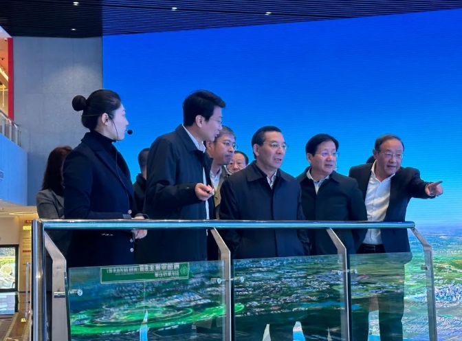 調(diào)研組一行在青島西海岸新區(qū)規(guī)劃展覽館考察。