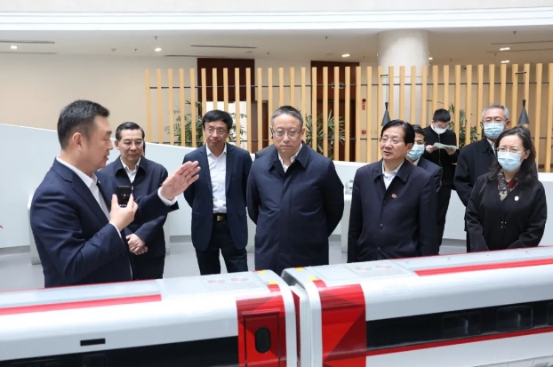 4月3日至6日,鄭建邦(左四)率調研組赴山東濟南、青島兩地開展“加快推動軌道交通產業高質量發展”年度重點考察調研。