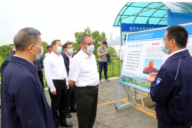 5月26日,民革中央調研組在湖北省武漢市武昌江灘五期考察余家頭水廠取水口。