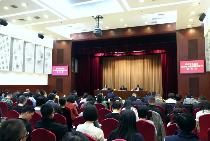 民革中央機(jī)關(guān)召開(kāi)傳達(dá)學(xué)習(xí)全國(guó)兩會(huì)精神報(bào)告會(huì)現(xiàn)場(chǎng)。
