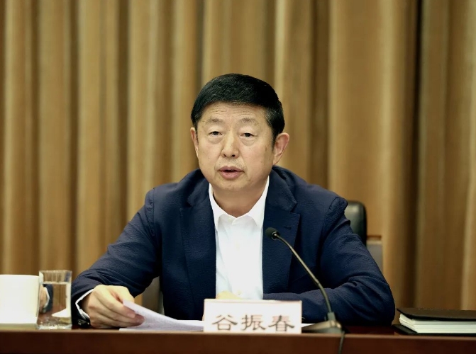 民革中央副主席谷振春傳達(dá)十四屆全國(guó)人大二次會(huì)議精神。