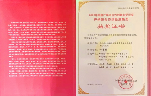 會議表彰了2023年在產學研深度融合等方面作出貢獻的先進單位和個人。民革天津市委會常委、中國汽車技術研究中心中央研究院副院長、資深首席專家劉志新領銜完成的“汽車安全高端檢測裝備與關鍵測試技術研發及應用項目”獲得2023年產學研合作創新成果一等獎。
