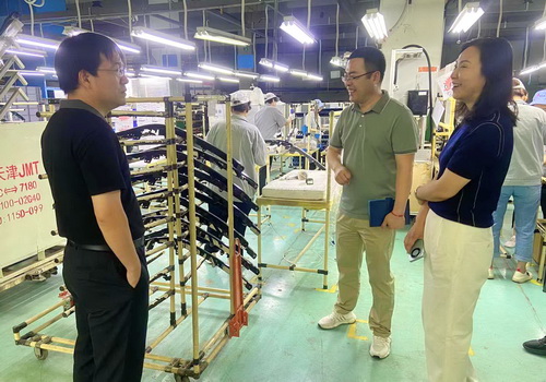 調(diào)研組深入公司車間一線實地考察生產(chǎn)經(jīng)營情況。公司主要產(chǎn)品以表面處理技術(shù)為依托,涉及汽車零配件等多領(lǐng)域,且在研發(fā)、投資等方面進一步完善布局。座談會上,雙方就東麗區(qū)工業(yè)用地盤活、余廢資源循環(huán)利用、在津車企加強與中汽中心對接協(xié)作、科技創(chuàng)新交流共享等開展了充分討論。