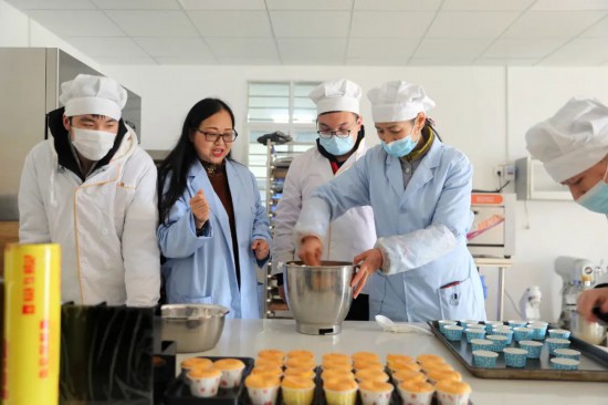 冉存英與學生一起做蛋糕