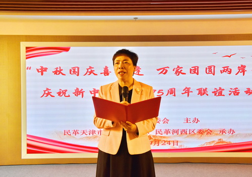 9月24日,由民革天津市委會主辦,民革天津市委會祖統委和民革天津河西區委會承辦的“中秋國慶喜相逢 萬家團圓兩岸情”聯誼暨慶祝中華人民共和國成立75周年活動在西岸非遺體驗館舉行。民革天津市委會秘書長、祖統委主任周潮洪,民革天津市委會原專職副主委、祖統委原主任王玉佩出席活動。祖統委副主任侯杰、郭佳君,祖統委老同志周興華、梁清泉,祖統委委員、區級組織黨員代表、市委會聯絡處同志參加活動。