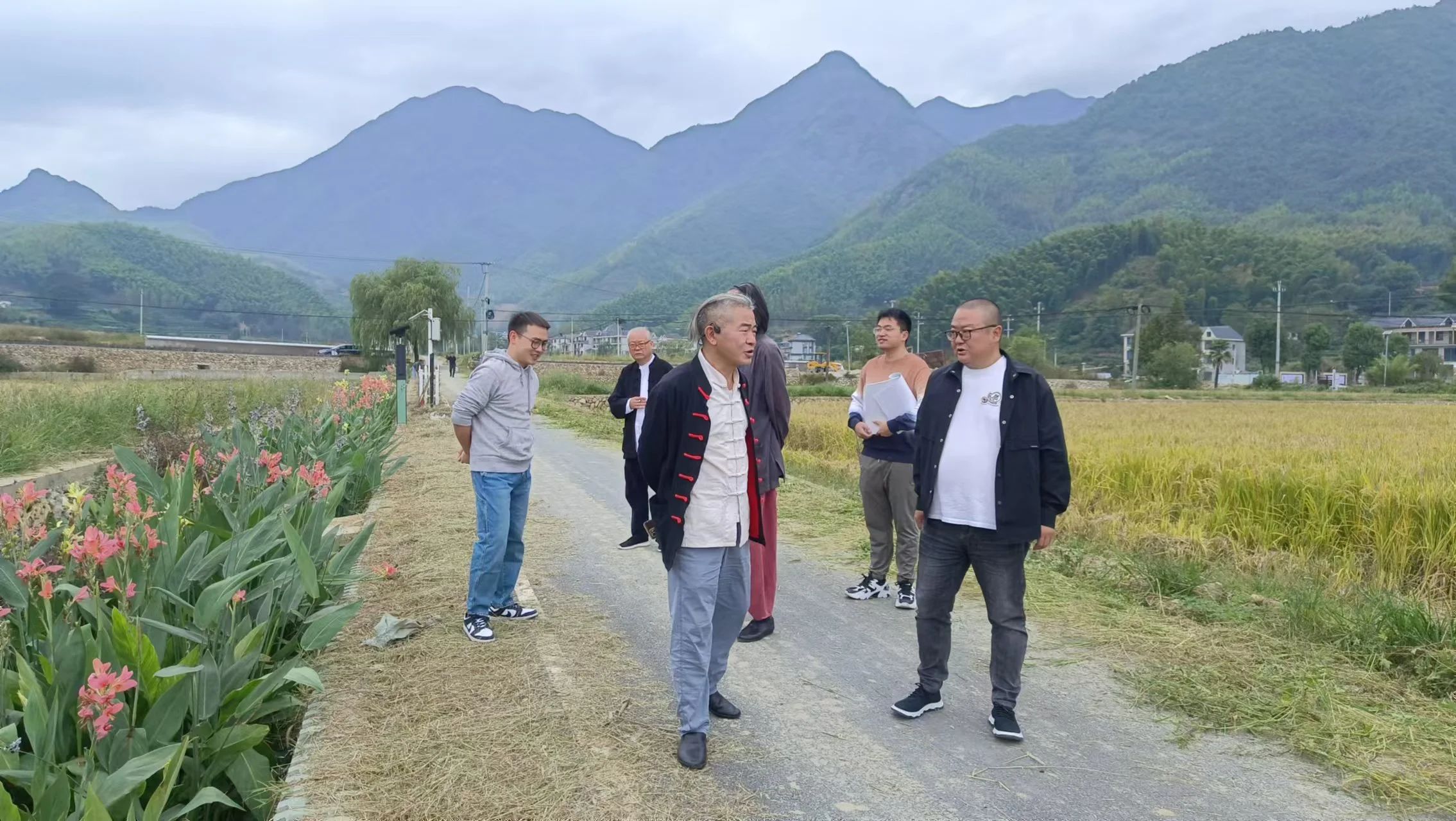 此次活動由省委會文化服務團副團長、浙江省逸仙書畫院副院長、省直屬五支部主委田振玉帶隊。采風寫生團一行深入坑口村村莊院落、和美鄉村建設現場、月季主題公園、稻種基地等,感受坑口風土人情,積累書畫創作素材。