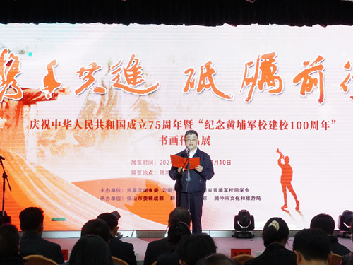 翰墨傳國(guó)粹,丹青頌和諧。今年是中華人民共和國(guó)成立75周年,恰逢黃埔軍校建校100周年、黃埔軍校同學(xué)會(huì)成立40周年,也是云南開放大學(xué)建校45周年,還是騰沖光復(fù)80周年。11月12日上午,由民革云南省委會(huì)、云南開放大學(xué)、云南省黃埔軍校同學(xué)會(huì)聯(lián)合主辦,中共保山市委統(tǒng)戰(zhàn)部、中共騰沖市委統(tǒng)戰(zhàn)部、騰沖市文化和旅游局承辦的書畫作品展在騰沖文化藝術(shù)展示中心盛大開幕,并于11月12日至12月10日持續(xù)展出。