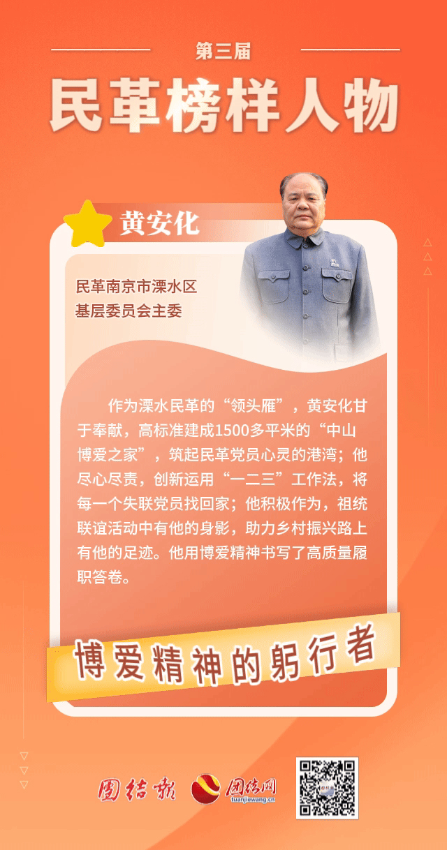 70多年來,民革全黨在中國共產(chǎn)黨的領(lǐng)導(dǎo)下,為國家富強(qiáng)、民族復(fù)興、人民幸福和促進(jìn)祖國和平統(tǒng)一貢獻(xiàn)了重要力量,涌現(xiàn)出一大批政治堅(jiān)定、品德高尚、開拓創(chuàng)新、業(yè)績突出的優(yōu)秀人物。為高質(zhì)量推進(jìn)民革"四位一體"建設(shè)工作,表彰先進(jìn),樹立典型,進(jìn)一步激勵(lì)廣大民革黨員更好地奮斗新時(shí)代、奮進(jìn)新征程,民革中央決定開展第三屆民革榜樣人物評選表彰活動(dòng)。