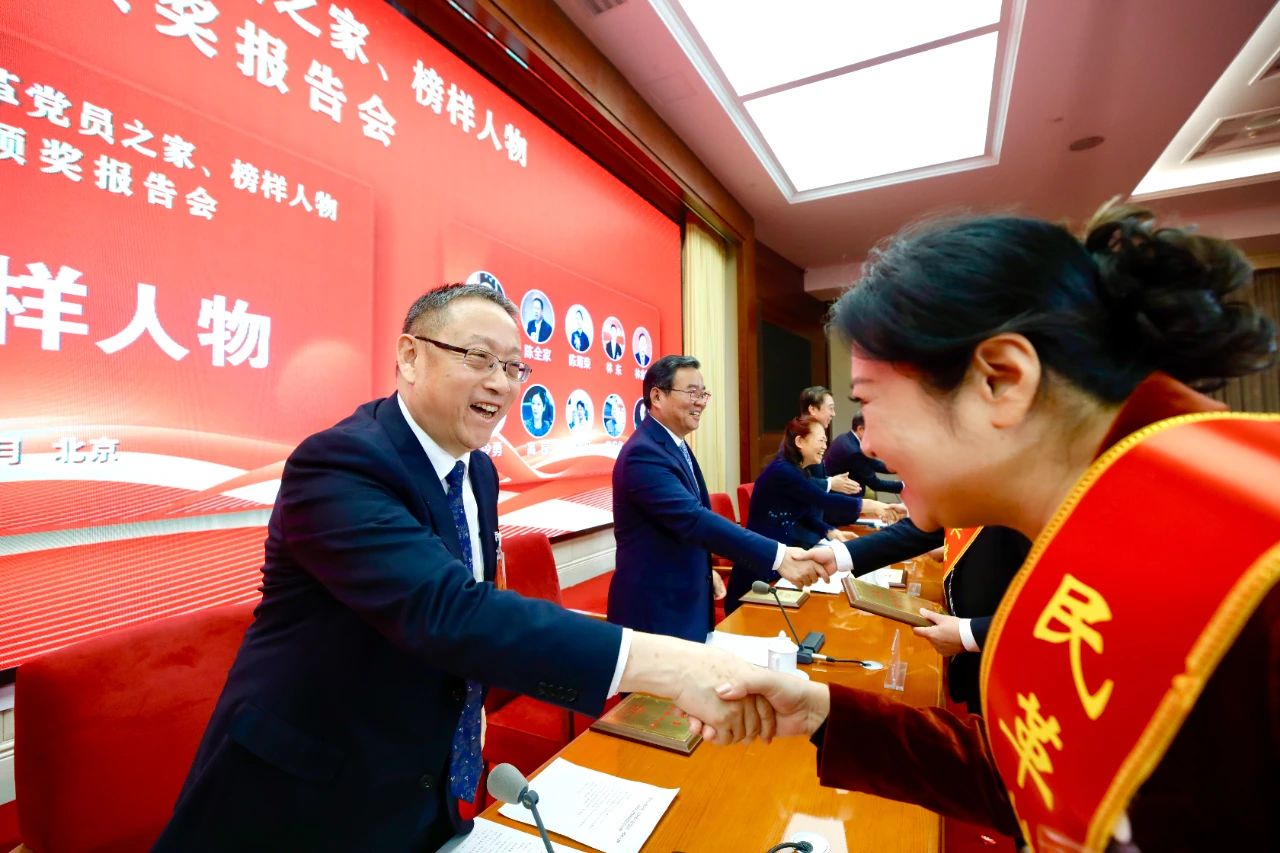 民革中央領(lǐng)導(dǎo)為獲表彰人員及代表頒獎(jiǎng)