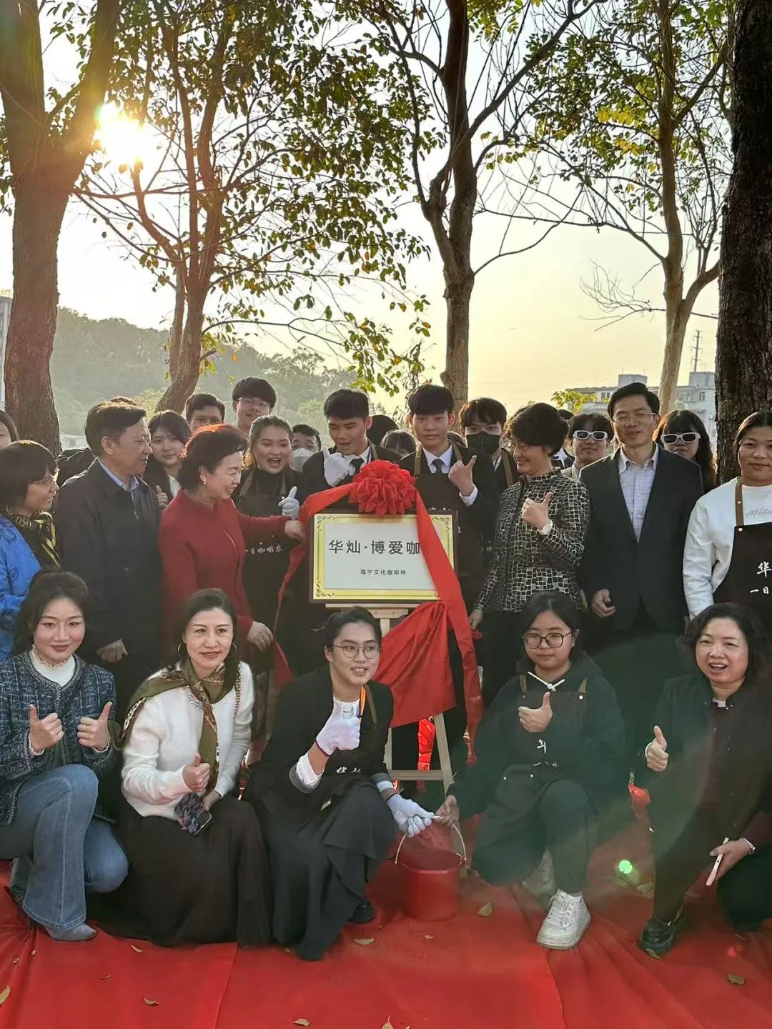 張慶盈(中排右三)與“第二十一屆臺灣高校杰出青年赴大陸參訪團(tuán)”的臺灣青年一起參加“華燦·一日咖啡農(nóng)”活動。