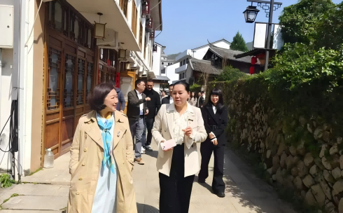 蔣勝男(左一)在溫州瑞安調研基層減負情況。