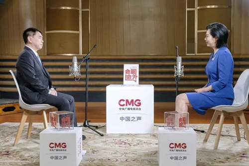 蔣滌非(左)接受中國之聲《會里會外》專訪