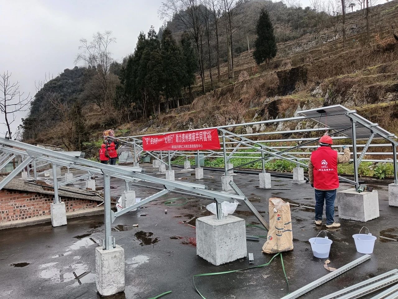 據(jù)了解,此次改造項(xiàng)目增加6米高太陽能路燈20盞,太陽能園路燈7盞。新建廣場公共廁所一棟,村民合作社廁所一間,庭院改造混凝土硬化570 平方米,排水溝改造120 米、排水溝現(xiàn)澆混凝土蓋板220平方米,路面拓寬澆筑混凝土 375平方米,紅磚矮墻347米,石砌擋土墻285立方米,花壇620米,栽種了灌木、喬木765株,綠化植被492平方米,安裝了健身設(shè)施、宣傳欄,噴制了苗族墻繪,新設(shè)一老一小活動(dòng)中心,完成石關(guān)小學(xué)旱廁改造,小學(xué)操場地坪改造2050平方米,跑道及籃球場硅膠1040平米,外墻面粉刷、涂料近2萬平米,光伏安裝20組共580塊光伏板,預(yù)計(jì)并網(wǎng)發(fā)電后每年可創(chuàng)收16萬元。