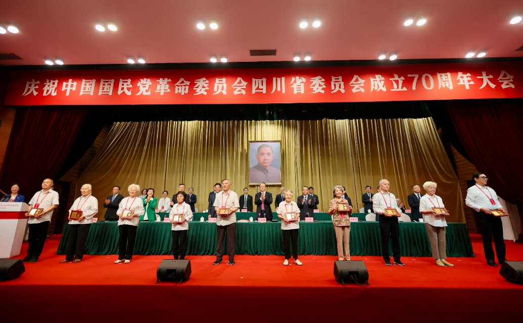 紀(jì)念大會(huì)上,鄭建邦為民革黨齡40年以上的老黨員及“光榮在黨70年”代表頒發(fā)紀(jì)念章,與會(huì)人員還共同觀看民革四川省委會(huì)成立70周年主題片。