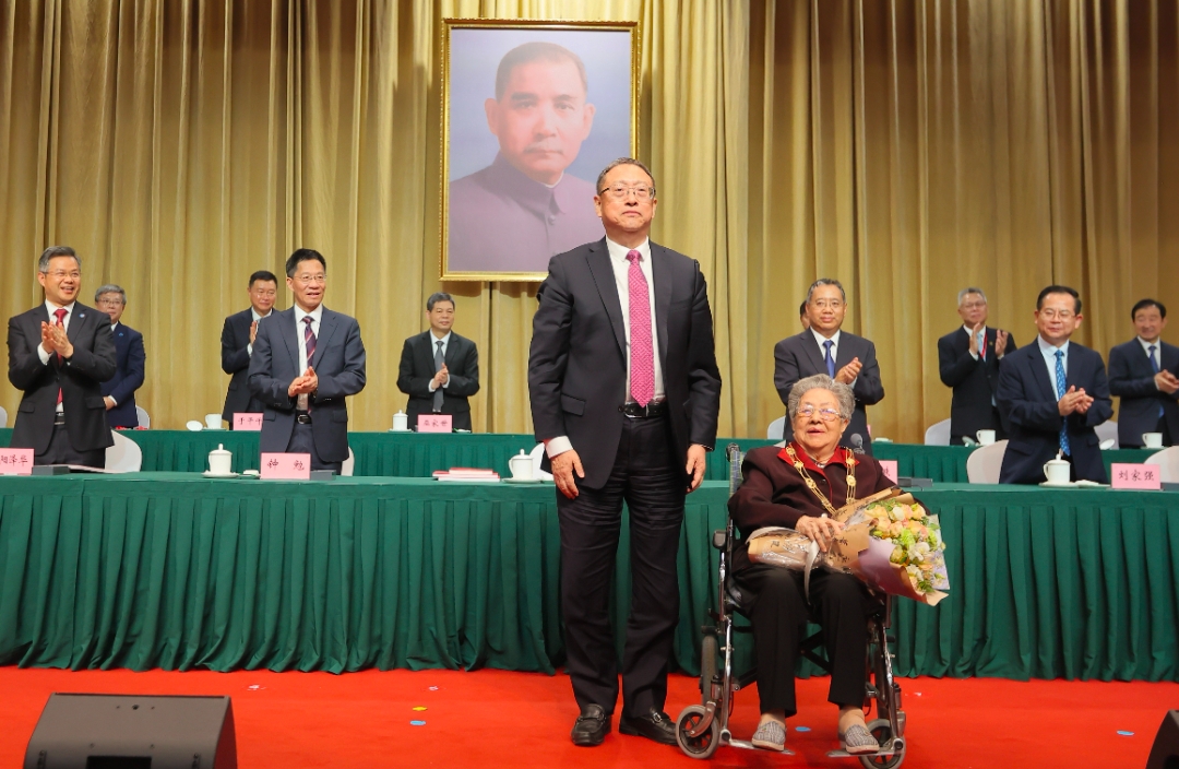 鄭建邦為四川民革“光榮在黨70年”代表頒發(fā)紀(jì)念章