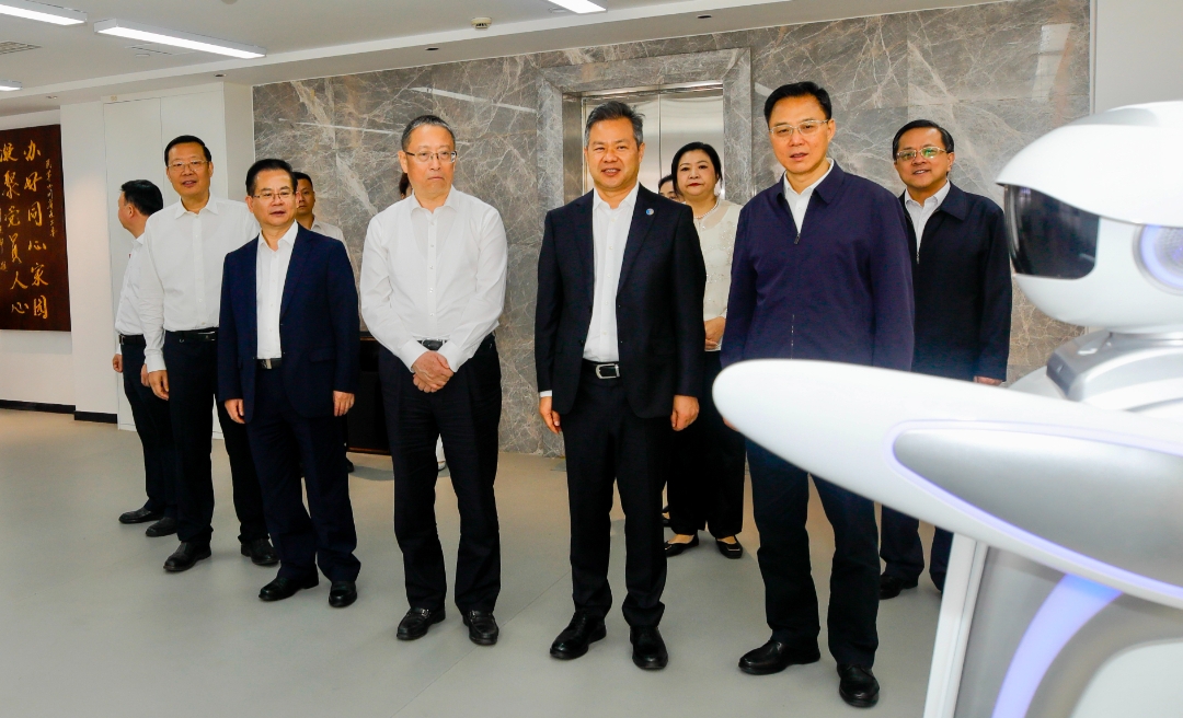 智能機(jī)器講解員為鄭建邦一行引導(dǎo)講解