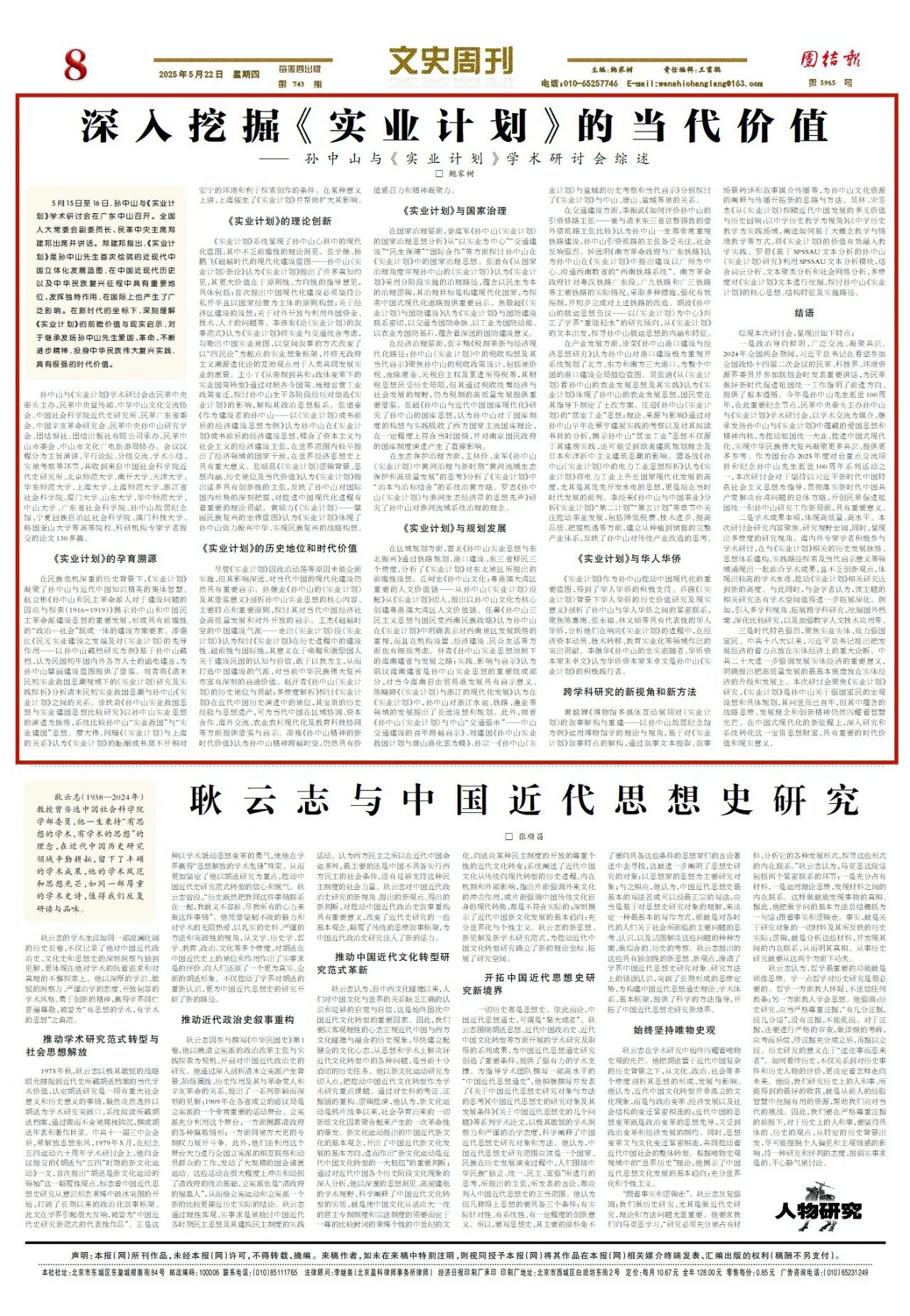 二是學(xué)術(shù)成果豐碩,體現(xiàn)高質(zhì)量、高水平。本次研討會研究內(nèi)容聚焦、研究視野宏闊,同時,呈現(xiàn)出多維度的研究視角。海內(nèi)外專家學(xué)者積極參與學(xué)術(shù)研討,在與《實業(yè)計劃》相關(guān)的歷史發(fā)展脈絡(luò)、思想體系建構(gòu)、實踐路徑探索及當(dāng)代啟示意義等領(lǐng)域涌現(xiàn)出一批前沿學(xué)術(shù)成果,且不乏創(chuàng)新觀點,體現(xiàn)出較高的學(xué)術(shù)水準(zhǔn),推動《實業(yè)計劃》相關(guān)研究達到新的高度。與此同時,與會學(xué)者認(rèn)為,該主題的相關(guān)研究還有學(xué)術(shù)空間值得進一步拓展深化。例如,引入多學(xué)科視角、拓展跨學(xué)科研究,挖掘國外檔案、深化比較研究,以及加強數(shù)字人文技術(shù)應(yīng)用等。