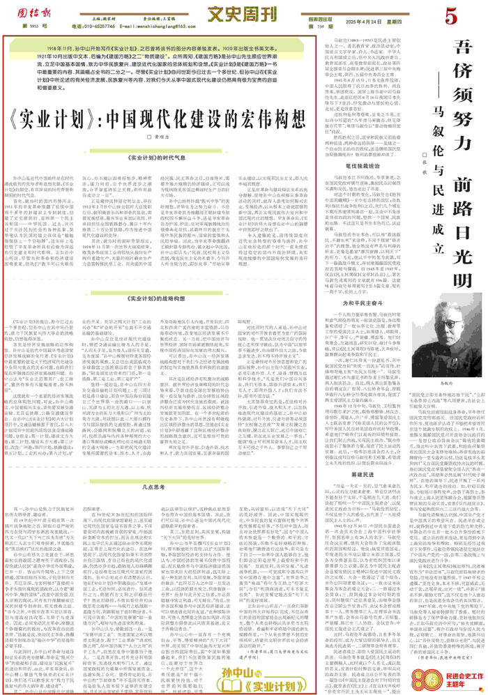 《實業計劃》的提出,距今已過去一個多世紀,但孫中山在其中所凸顯的、致力于民族復興偉大事業的戰略構想,仍然值得深思。