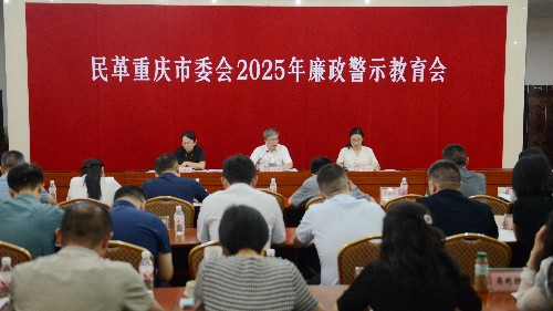 為貫徹落實中共中央八項規定精神,推進作風建設常態化長效化,教育引導廣大民革黨員特別是黨員領導干部筑牢法紀觀念、增強自我約束意識,民革重慶市委會于6月13日召開2025年廉政警示教育會。