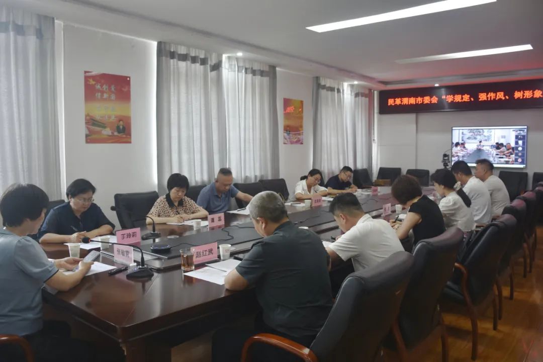 6月13日下午,民革渭南市委會召開“學規(guī)定、強作風、樹形象”主題教育推進會,會議采取線上線下相結合的方式進行。渭南市政協(xié)副主席、民革渭南市委會主委張敏霄主持會議并講話。民革渭南市委會副主委丁玲莉、秘書長趙紅武,各基層組織班子成員,城區(qū)部分骨干黨員以及機關全體干部參加。