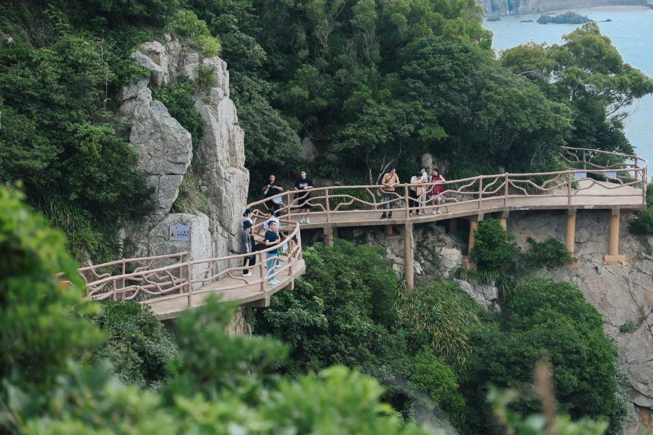 23日下午,臺灣青年走進洞頭區半屏山同心小鎮?!鞍肫辽剑肫辽?,一半在洞頭,一半在臺灣”——這首流傳數百年的閩南民謠,道出洞頭與臺灣血脈相連的深厚淵源。在洞頭半屏山巔,一座“同源同根碑”靜靜矗立。臺灣青年與民革黨員一同走近這座碑,低聲念誦碑文:“兩岸半屏,鄉音鄉情。珠聯璧合,共贏榮景?!迸_灣青年蔡孟軒不由得感嘆:“沒想到兩岸半屏山還有這般連接,讓我們感受到原來兩岸真的這么近,兩岸同胞本就是一家人!”