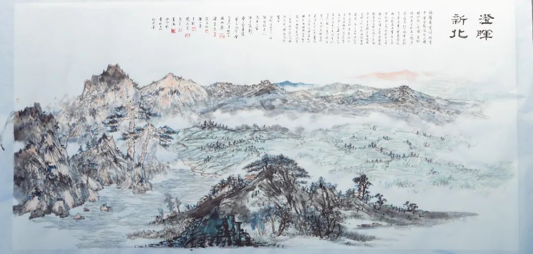 活動現場,兩岸藝術家攜手創作了名為《澄暉新北》的書畫長卷,并分享創作理念與感悟。