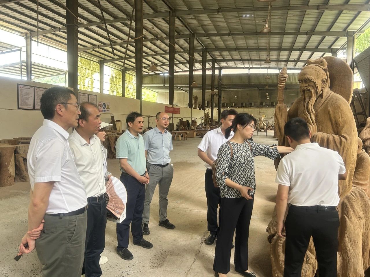 調研組一行實地考察了開化縣根源小鎮、浙江玄妙藝品有限公司等地,詳細了解開化根雕產業在原材料采購、根藝產品開發、銷售市場拓展等方面情況,對根匠人才培養、根宮佛國5A級景區運營等具體情況進行了現場交流。