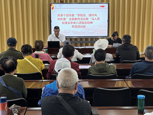 7月17日,民革個舊市委會組織全市40余名黨員走進中共個舊市委黨校,開展“學規定、強作風、樹形象”主題教育專題培訓會。
