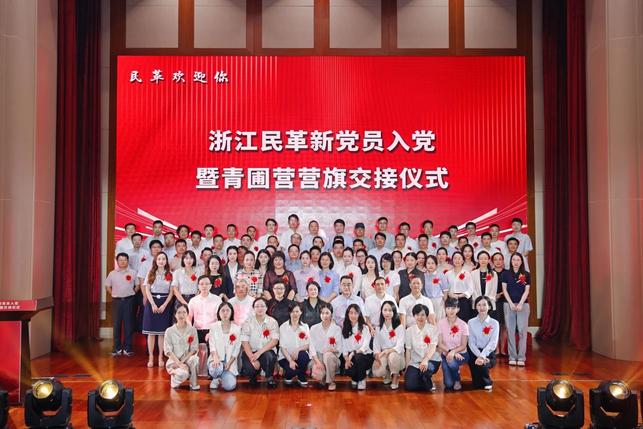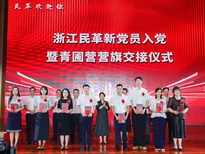 民革中央副主席、浙江省委會主委吳晶,民革浙江省委會副主委劉凈非、林革、章獻民、計偉榮、徐銘恩、朱法君為新黨員授書贈章。