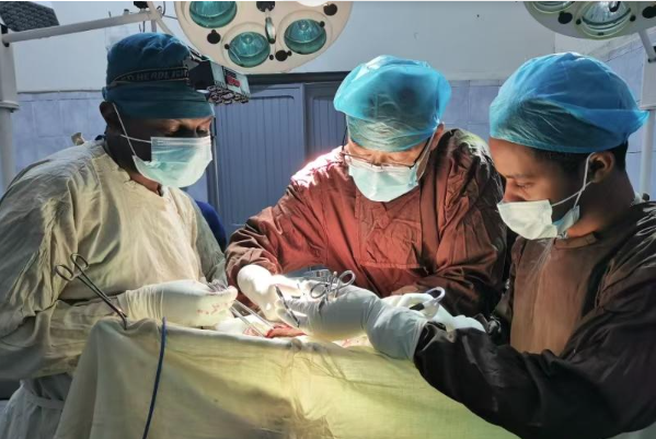 “當時我立刻就回宿舍取了自己的錢,交給患兒的媽媽,讓她去買手術用的刀片、線、碘伏、紗布、膠布、引流管、尿管等用品,然后立即實施了手術。”術后,為了盡快恢復腸道功能,強堯生又協調中國針灸師進行針灸治療,最后患兒痊愈出院。
