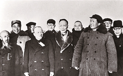 1949年3月25日,毛澤東率中共中央機(jī)關(guān)和人民解放軍總部進(jìn)入北平,同前來(lái)迎接的民主黨派負(fù)責(zé)人和其他民主人士在西苑機(jī)場(chǎng)合影。左四為李濟(jì)深。